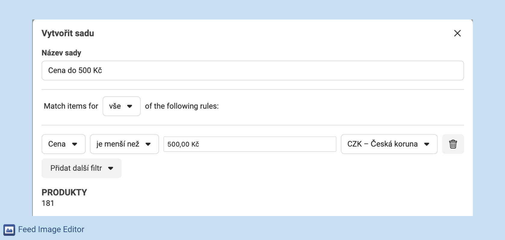 - Ak už pracujete s výbermi a máte pre každý z nich vytvorenú šablónu vo Feed Image Editore, dajte si pozor na ich hierarchické poradie. Viac sa dozviete v článku Nastavte si hierarchické poradie šablón vo Feed Image Editore.